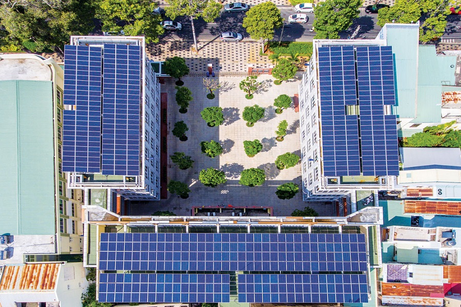 Pin năng lương mặt trời được lắp đặt tại tòa nhà văn phòng