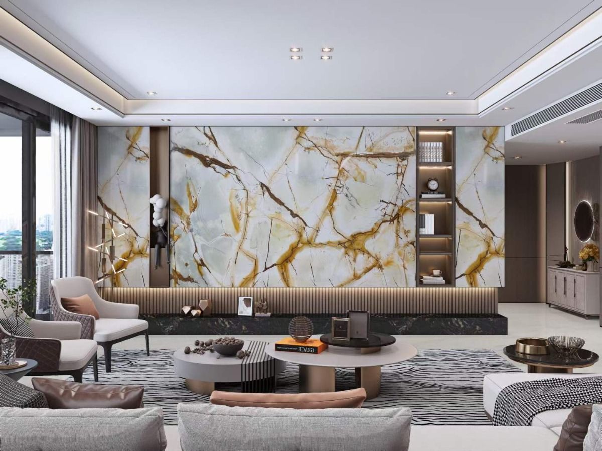 Tường ốp đá tự nhiên: Marble, Onyx xuyên sáng … tạo nên điểm nhấn quyền lực cho phòng khách, phòng ăn
