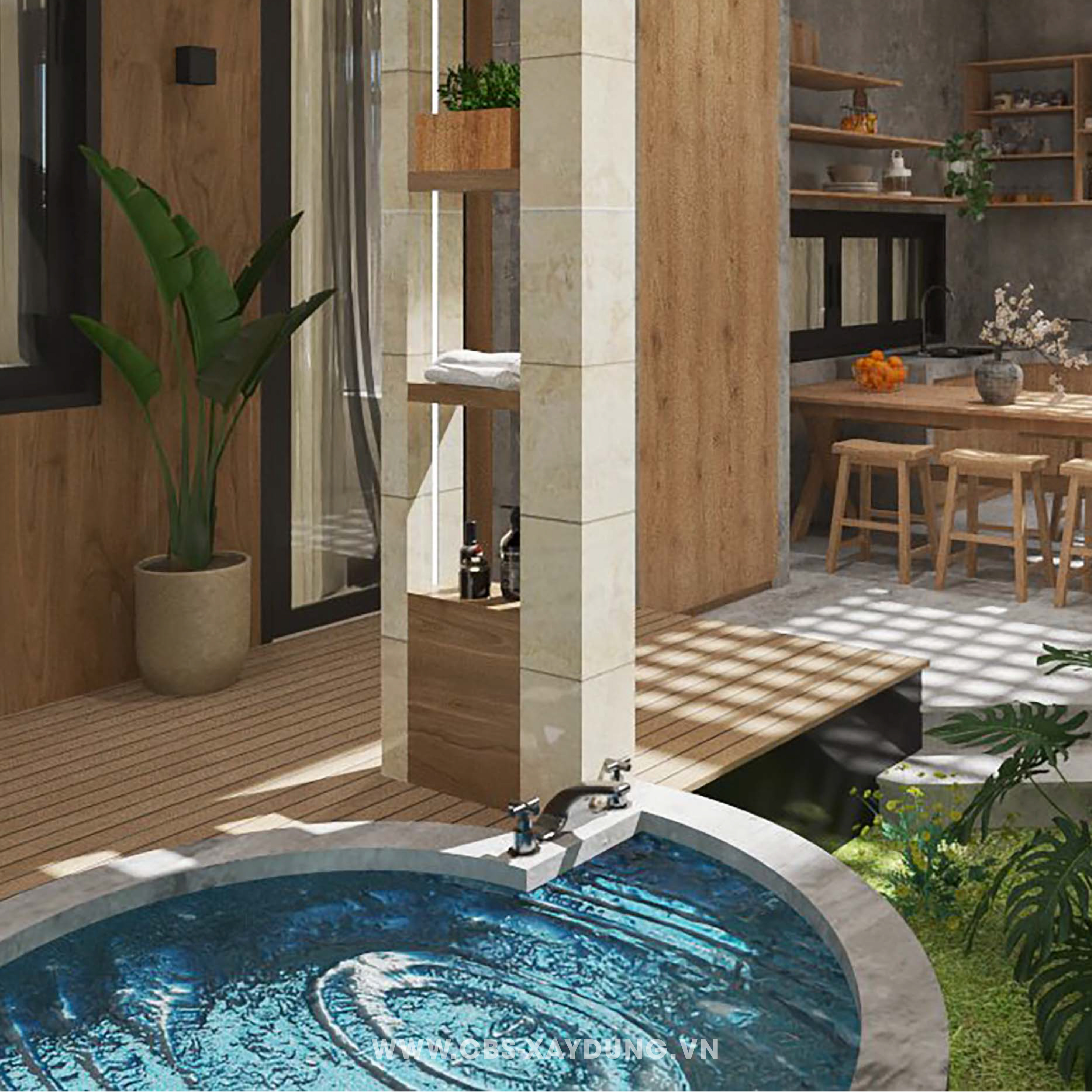 Sân vườn, hồ bơi jacuzzi, bếp khô kết nối